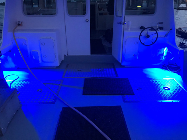 The intensity always picks up at night. Equipped with two light boxes and four LED panel lights from DuraBrite for night diving & deck work, WARFISH has the lighting necessary to not only see what we're doing, but also what the sharks are doing.