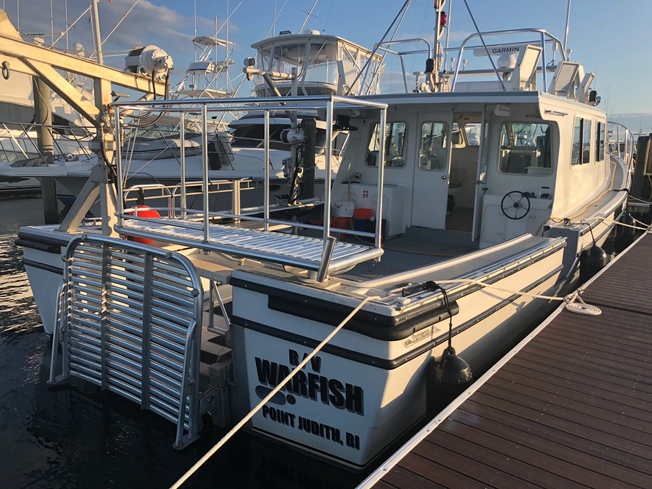 WARFISH features side scan sonar and a thermal & night vision camera, critical equipment to locate sharks. An adjustable 51" swim platform and removable side door provide superior access to the predators.